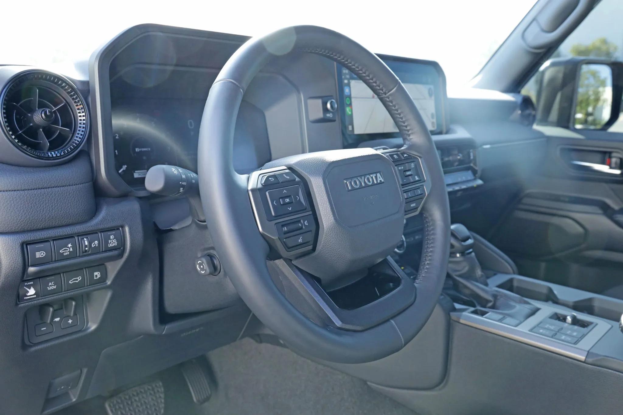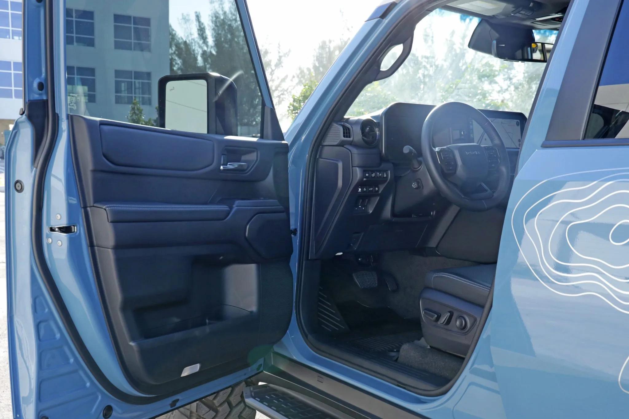Inside, the heated and ventilated power-adjustable front seats are trimmed in Black SofTex. Interior features include three-zone automatic climate control, a 12.3-inch Toyota Audio Multimedia touchscreen, and a 12.3-inch configurable digital instrument cluster. A MOLLE storage and shelving system has been added to the rear cargo area.