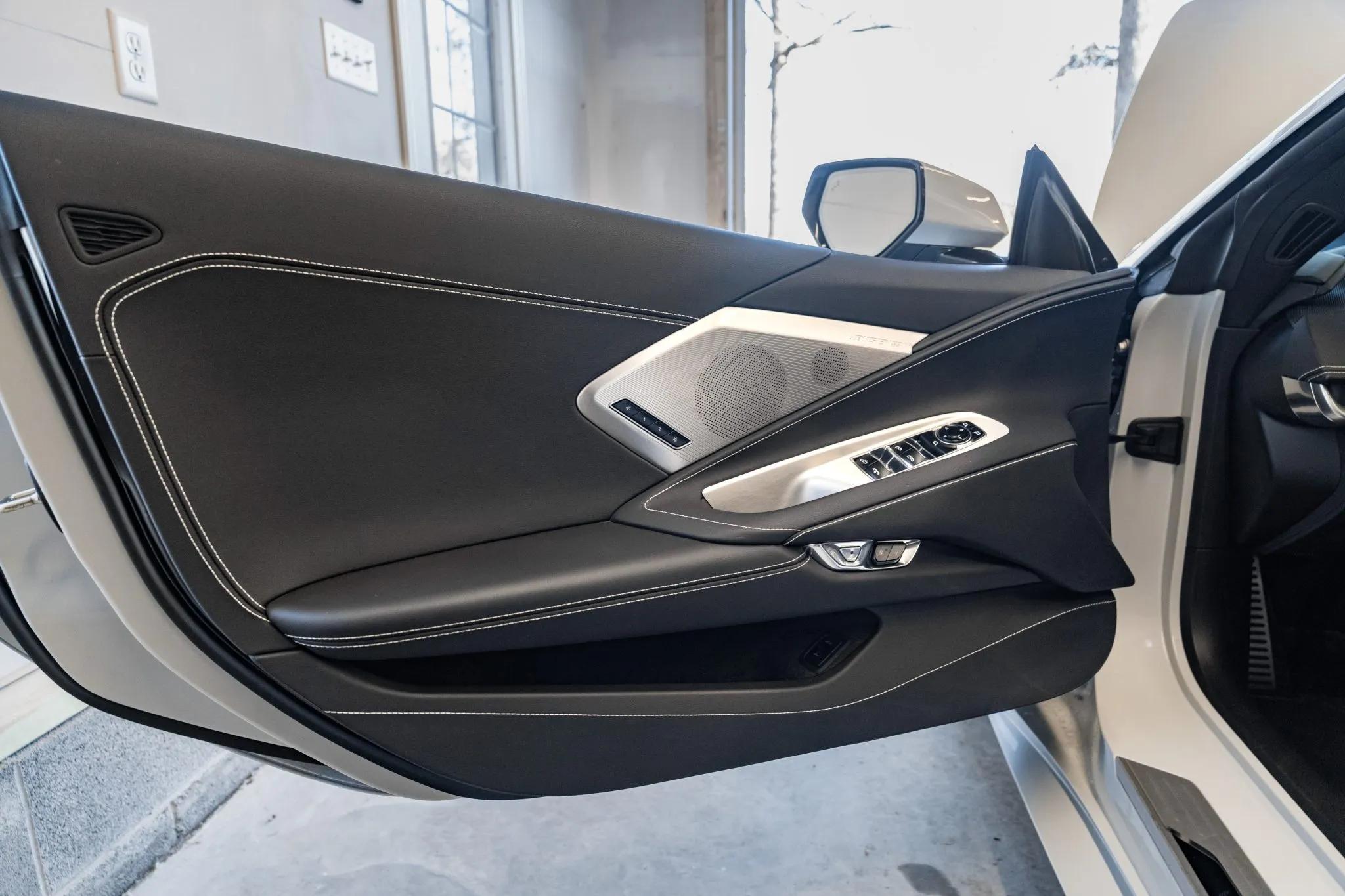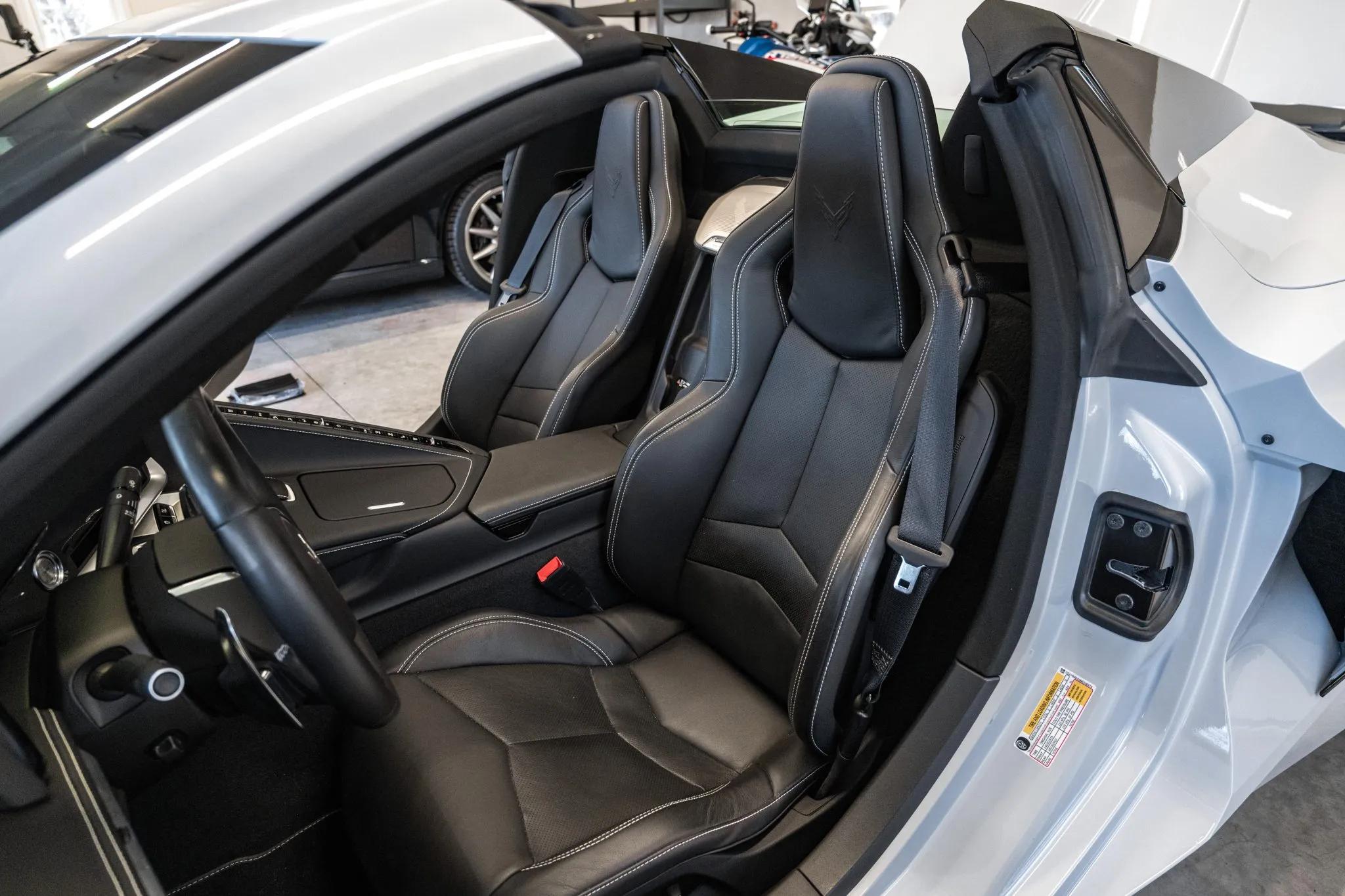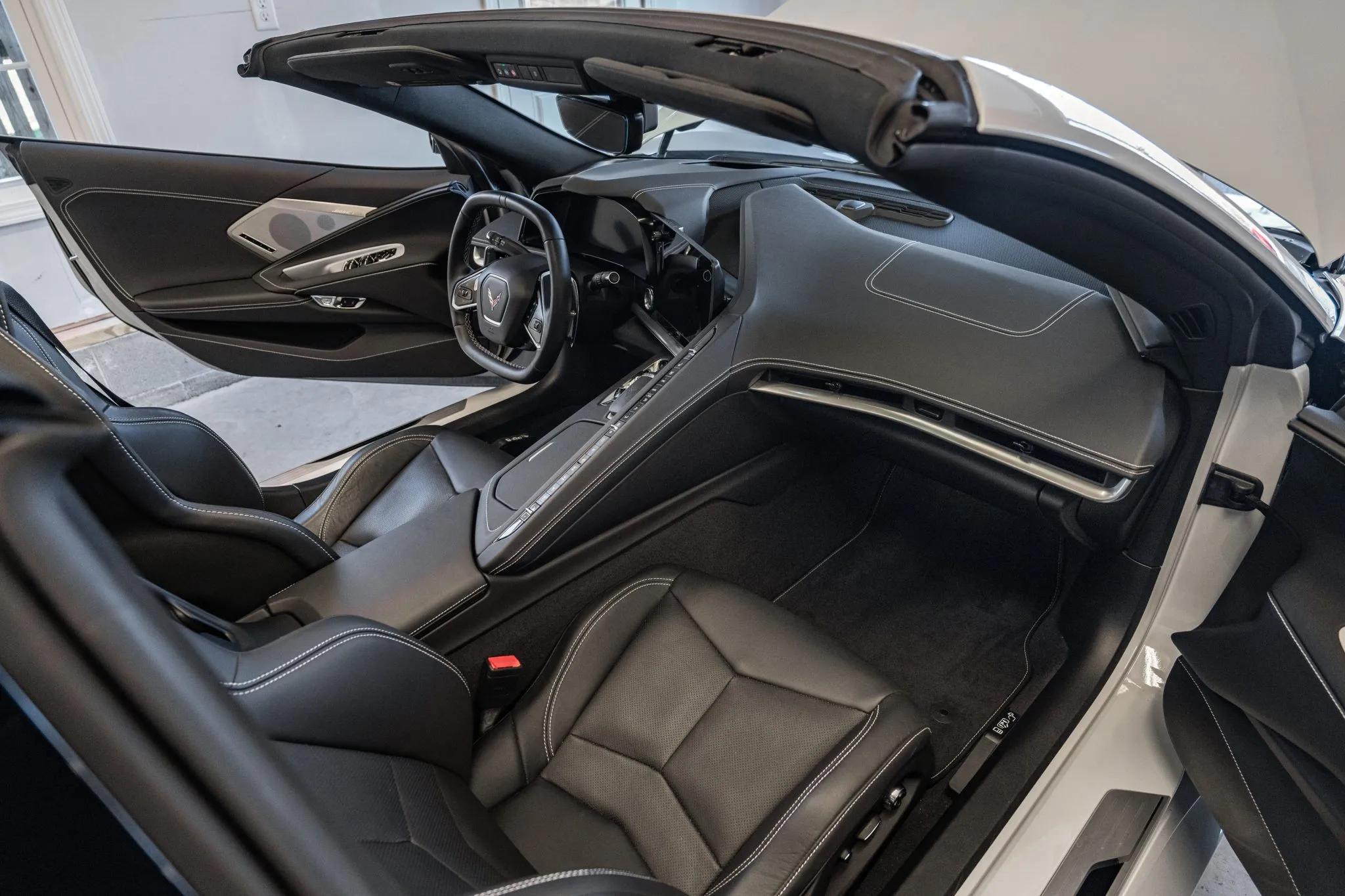This 2021 Chevrolet Corvette Stingray Convertible is finished in Ceramic Matrix Gray Metallic over Jet Black leather upholstery and is equipped with the Z51 Performance Package and the 2LT Equipment Group. Power comes from a mid-mounted 6.2-liter LT2 V8 rated at 495 horsepower and 470 lb-ft of torque with the Z51 performance exhaust system. The engine is paired with an eight-speed dual-clutch automatic transaxle and an electronically controlled limited-slip differential.