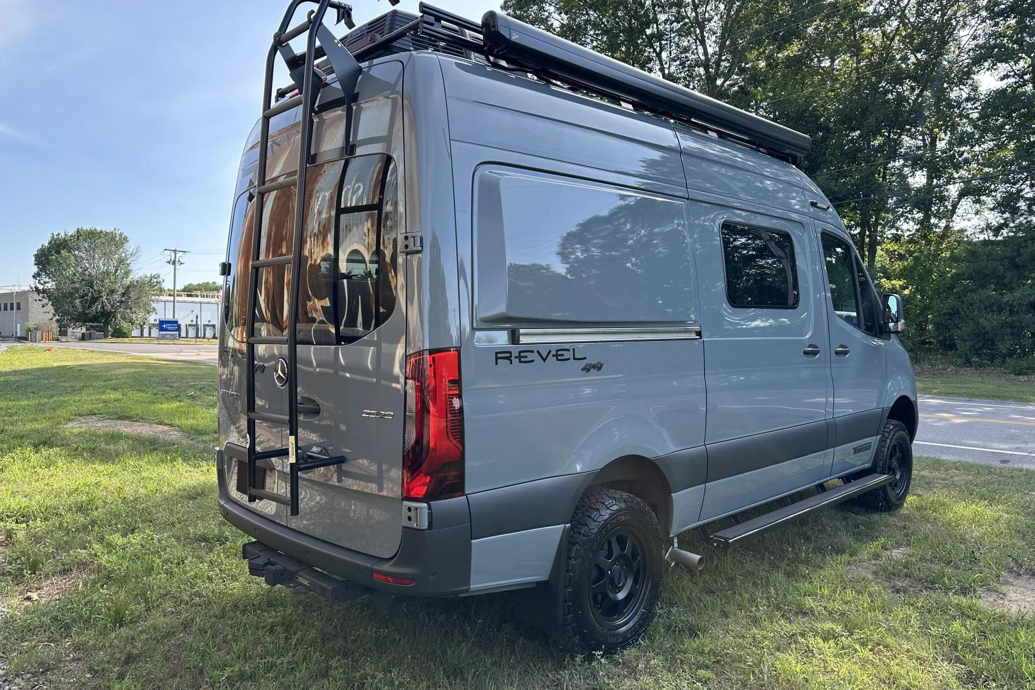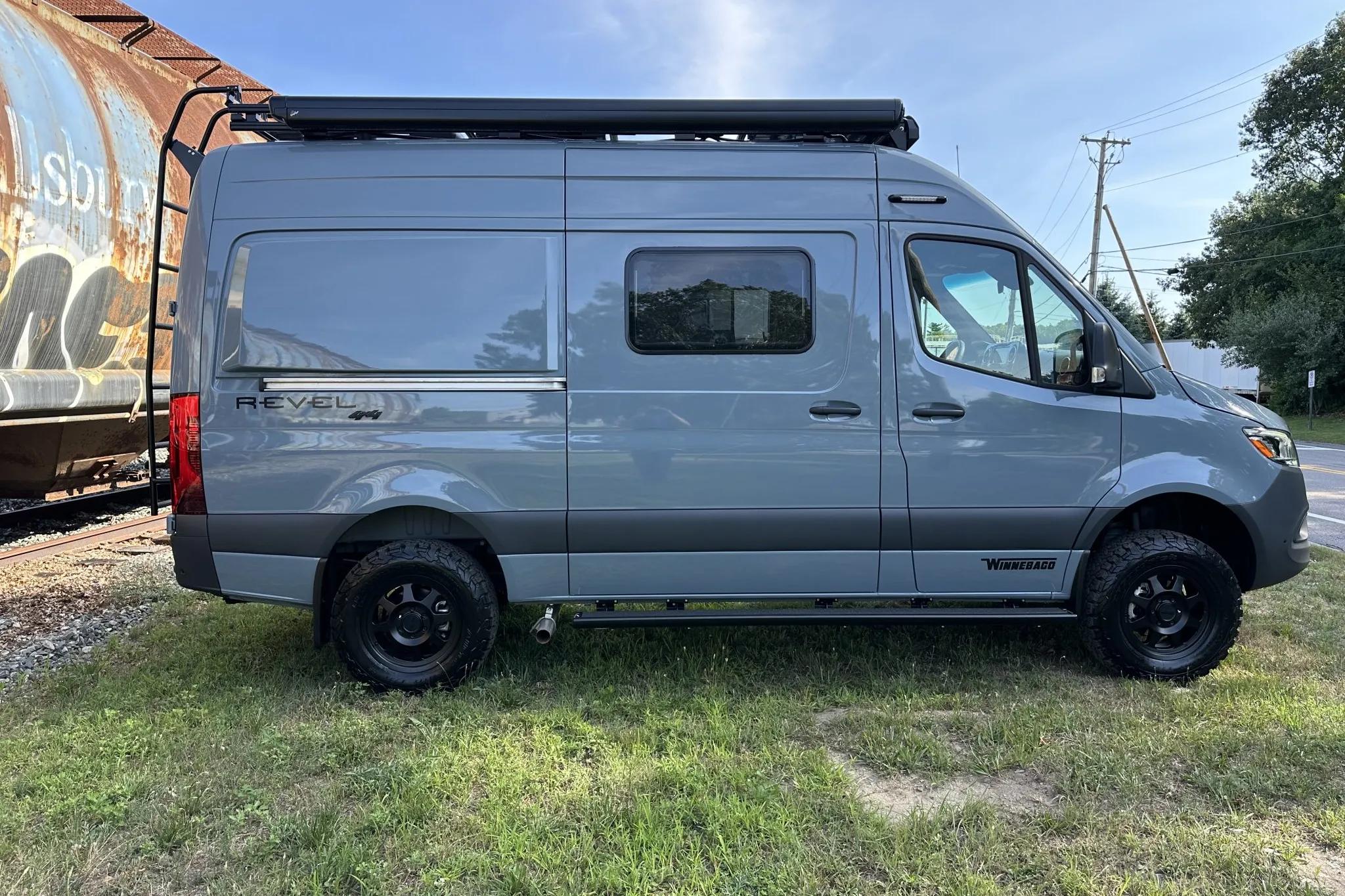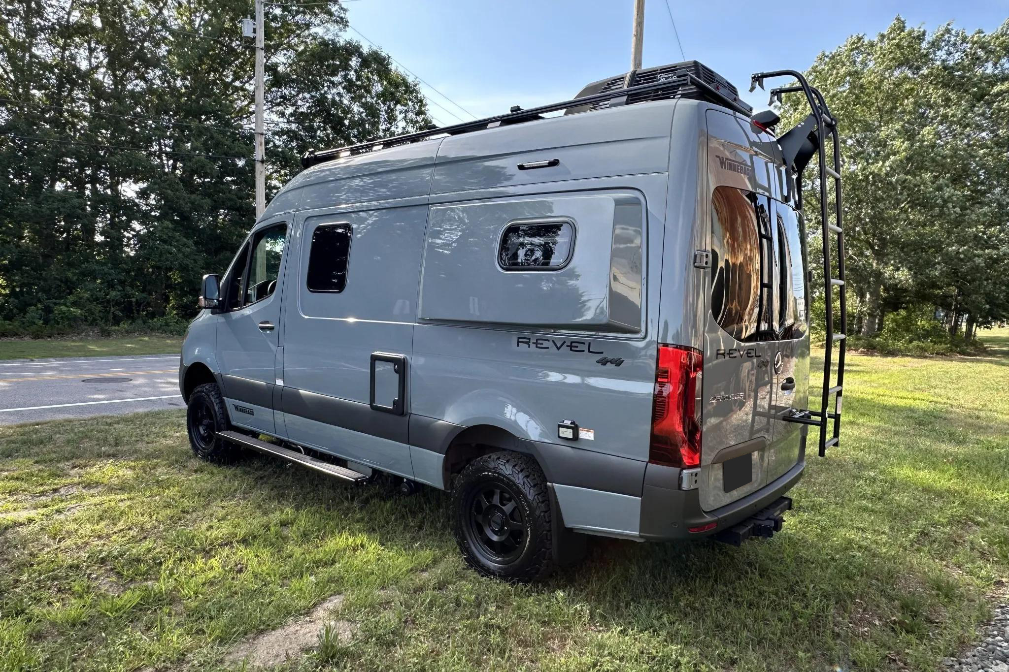 This 2024 Winnebago Revel 4�4 is built on a 2022 Mercedes-Benz Sprinter 2500 chassis and is powered by a 3.0-liter turbodiesel V6 paired with a seven-speed automatic transmission and a dual-range transfer case.