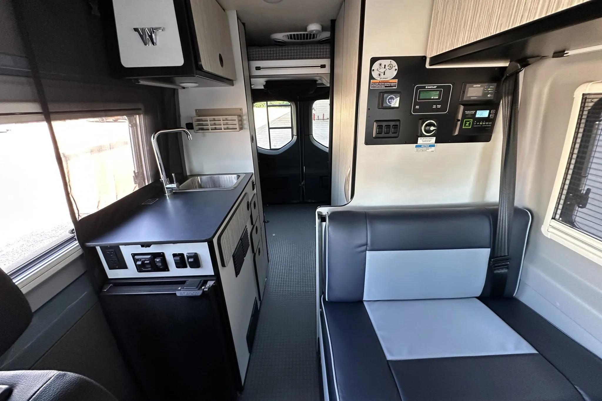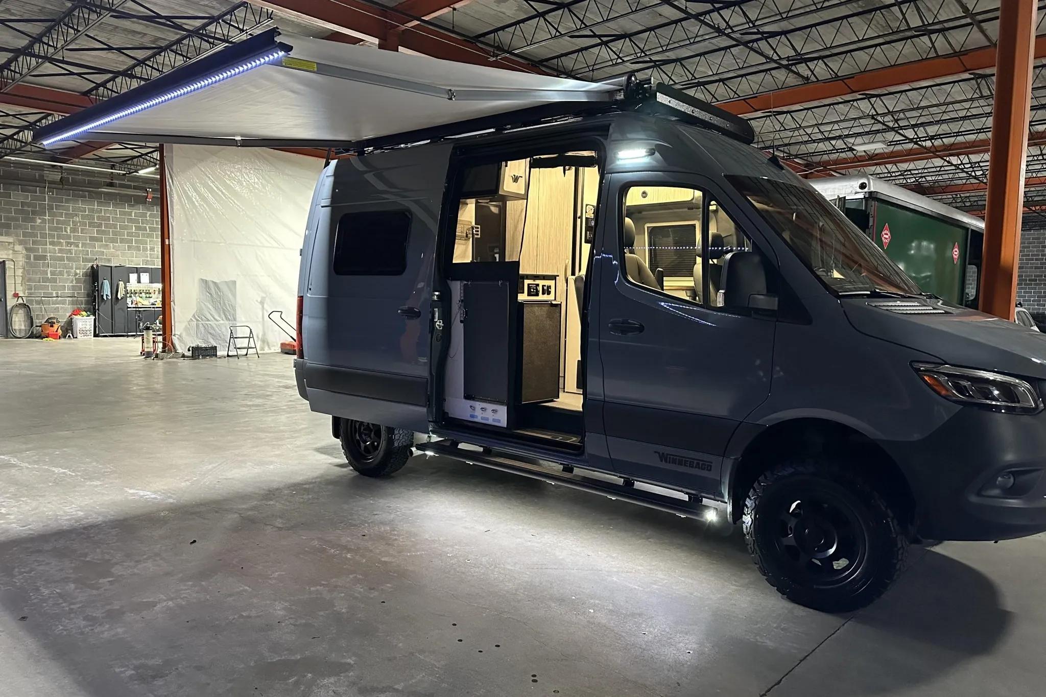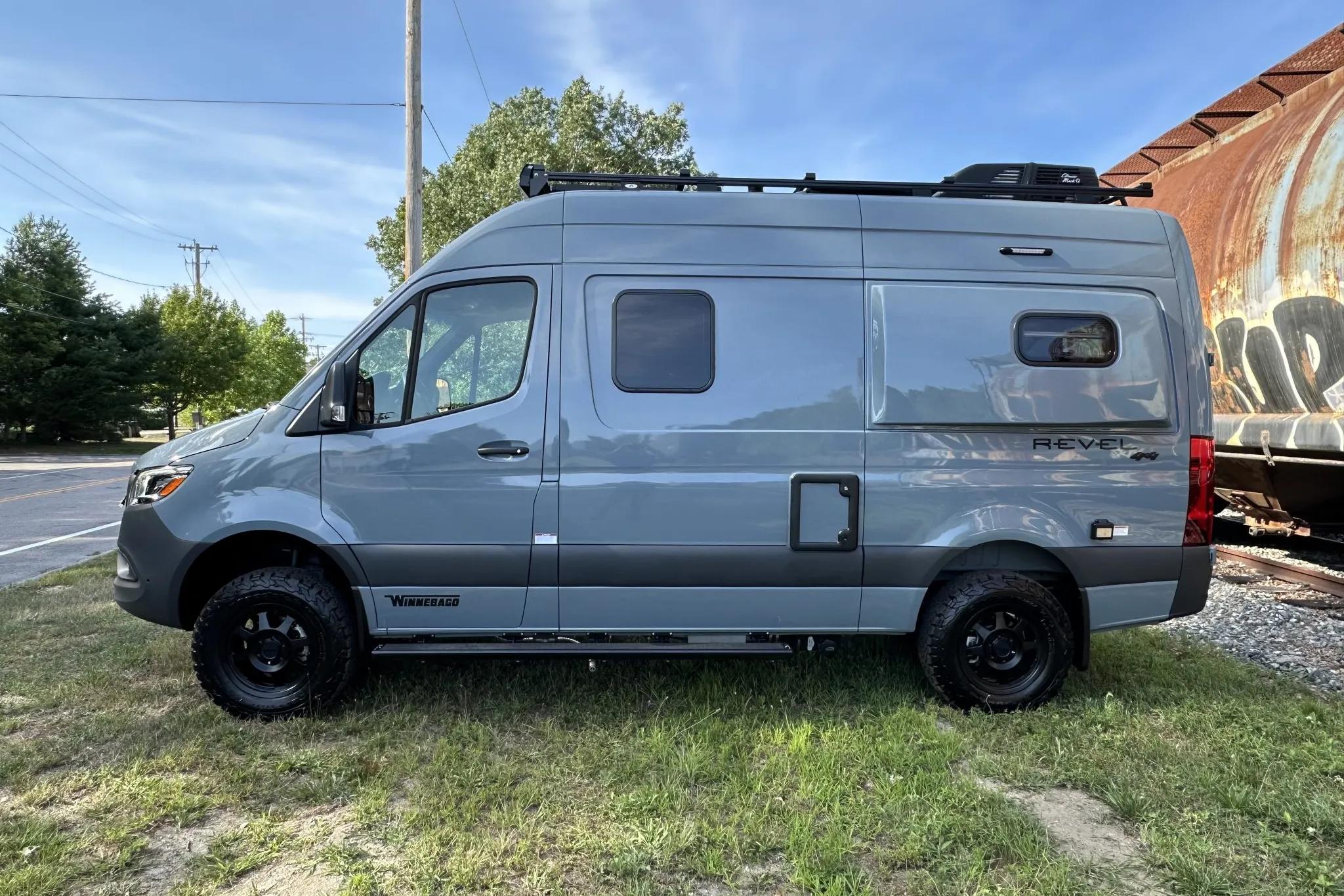 This 2024 Winnebago Revel 4�4 is built on a 2022 Mercedes-Benz Sprinter 2500 chassis and is powered by a 3.0-liter turbodiesel V6 paired with a seven-speed automatic transmission and a dual-range transfer case.