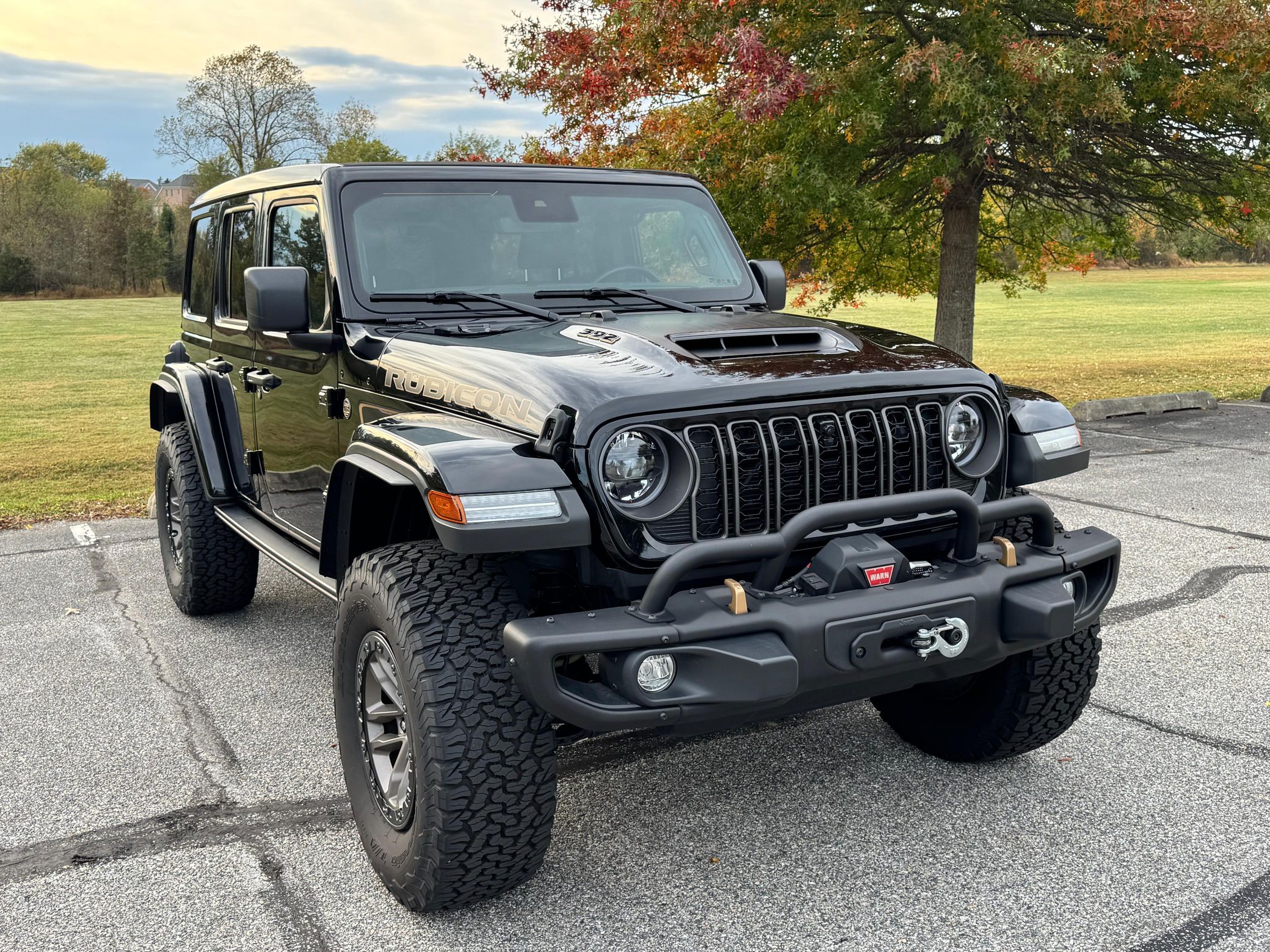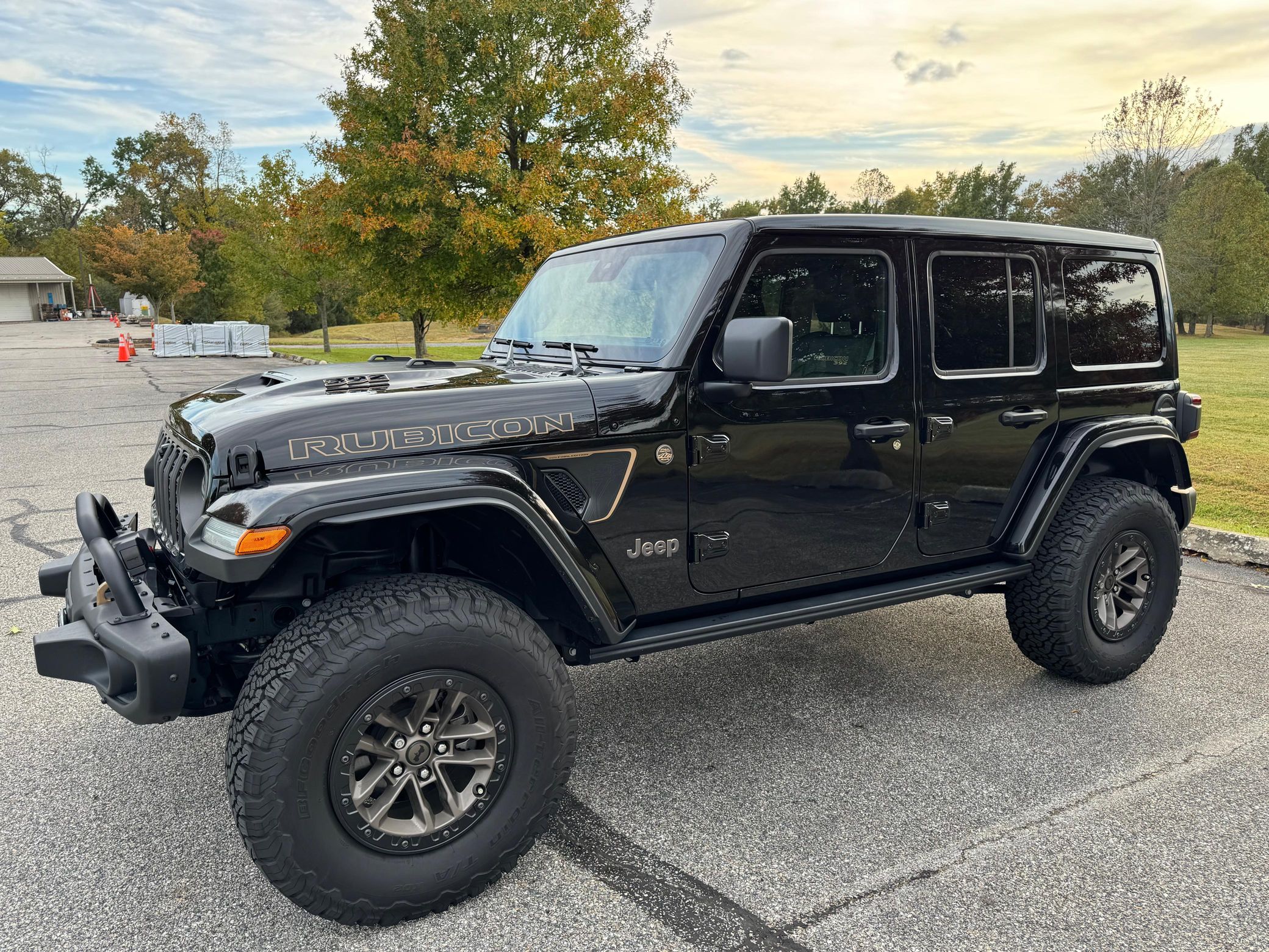 Finished in black over black interior, this Wrangler Rubicon 392 Final Edition is powered by a 6.4-liter Hemi V8 producing 470 horsepower and 470 lb-ft of torque. Power is sent to all four wheels through an 8-speed automatic transmission and a 2-speed transfer case. The drivetrain includes Tru-Lok front and rear locking differentials with solid axles. The hood features Hydro-Guide technology to prevent water from entering the air intake.